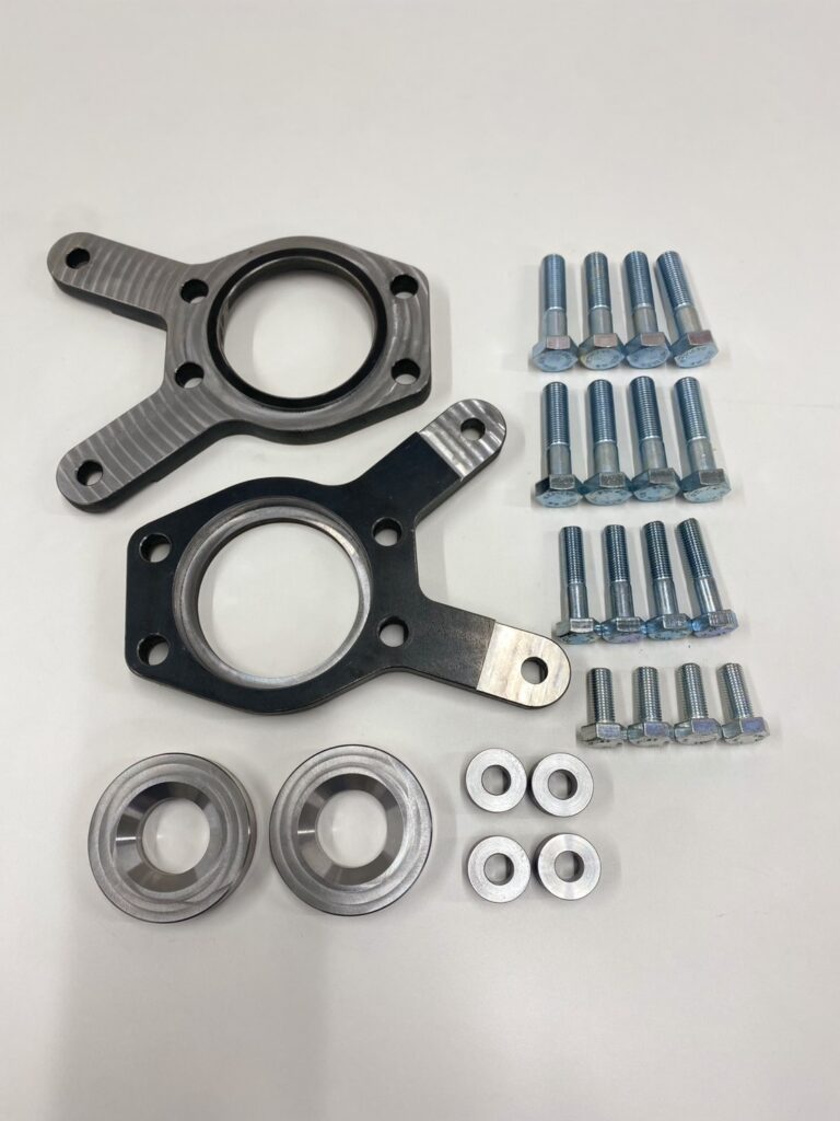 ・ブレーキキャリパー単体での脱着が可能な位置関係にて位置出しをしていますので、ブレーキキャリパーの一部加工が必要になります。